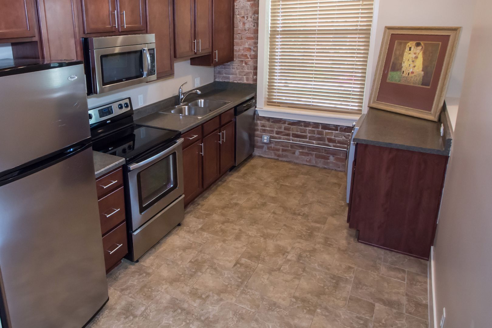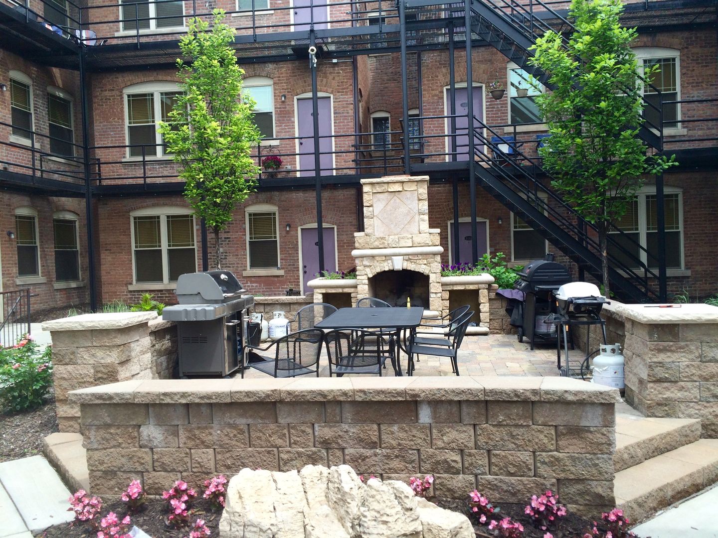 Gorgeous Flats with wood floors, 10 ft ceilings, exposed brick walls, huge windows, cherry wood cabinets, brand new stainless steel appliances, Washer & Dryer in apartment (no additional fee), amazing landscaping, central courtyard featuring large outdoor fireplace for entertainment & warmth. LOCATION: great interstate access, 10 minute walk to the entertainment district at Midtown Crossing, 5 minute drive to the Old Market, near UNMC and Creighton.