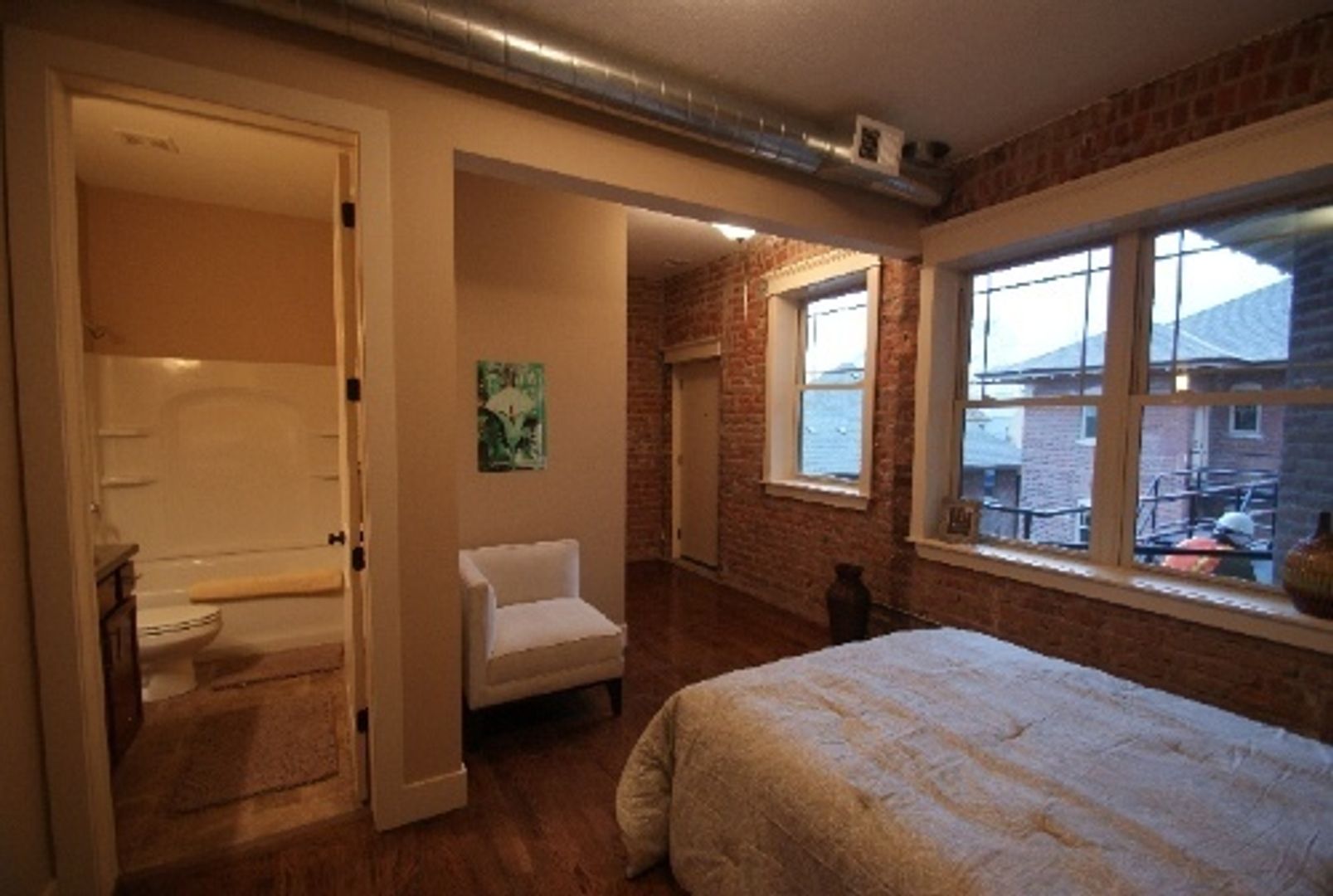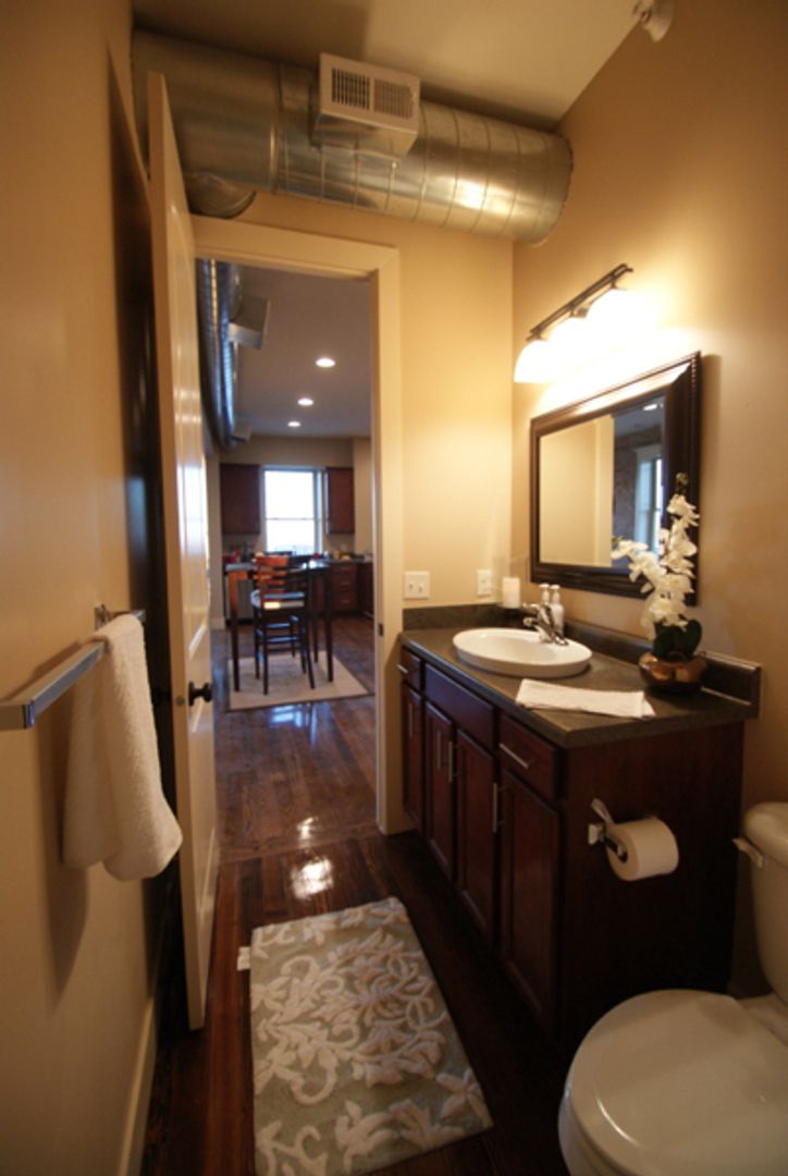 Gorgeous Flats with wood floors, 10 ft ceilings, exposed brick walls, huge windows, cherry wood cabinets, brand new stainless steel appliances, Washer & Dryer in apartment (no additional fee), amazing landscaping, central courtyard featuring large outdoor fireplace for entertainment & warmth. LOCATION: great interstate access, 10 minute walk to the entertainment district at Midtown Crossing, 5 minute drive to the Old Market, near UNMC and Creighton.